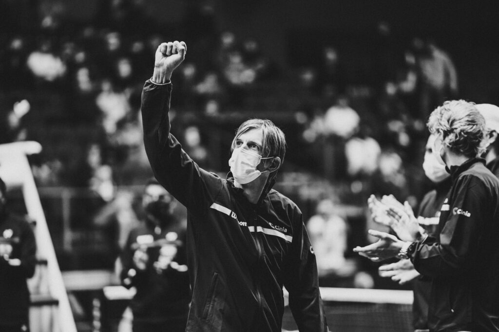 Maajoukkuekapteeni Nieminen muistelee Talin kabinetissa lämmöllä syyskuun maaottelua Intiaa vastaan Espoo Metro Areenalla. Suomi kukisti vierailijansa 3-1 ja eteni Davis Cup Finals -lopputurnauksen karsintoihin, jotka pelataan maaliskuussa 2022. Suomen vastustaja ja pelipaikka selviävät joulukuun alussa.