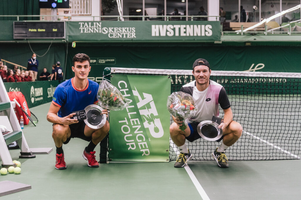 Itävaltalaiset Alexander Erler ja Lucas Miedler juhlivat nelinpelin turnausvoittoa ATP Challenger -turnauksessa, HPP Open, Talin Tenniskeskuksessa.