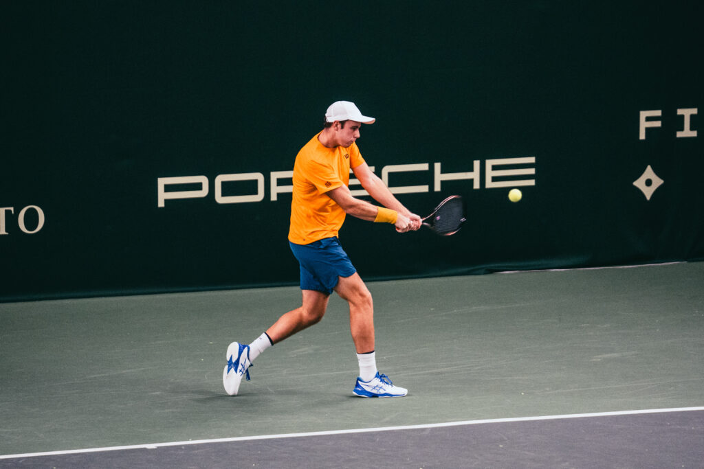 HPP Openin miesten kaksinpelin pääsarja käynnistyi tänään maanantaina 14.11. jo kolmella kaksinpelillä. Sijoitetuista pelaajista kolmanneksi sijoitettu, Hollannin 25-vuotias, Tim Van Rijthoven (ATP-109), kärsi yllätystappion heti pääsarjan avausottelussa Belgian 23-vuotiaalle, Zizou Bergsille (ATP-135) luvuin 7-6 (9) 6-1. Myös turnauksen neljänneksi sijoitetulle, Slovakian Norbert Gombosille (ATP-112) tuli noutaja yllättäen, tiukassa taistelussa Italian, 21-vuotiasta, Mattia Belluccia (ATP-157) vastaan kolmessa erässä. Bulgarian 21-vuotias, Adrian Andreev (ATP-220), oli vastustajaansa parempi kolmessa tiukassa erässä ja selvitti siten tiensä pääsarjan toiselle kierrokselle.